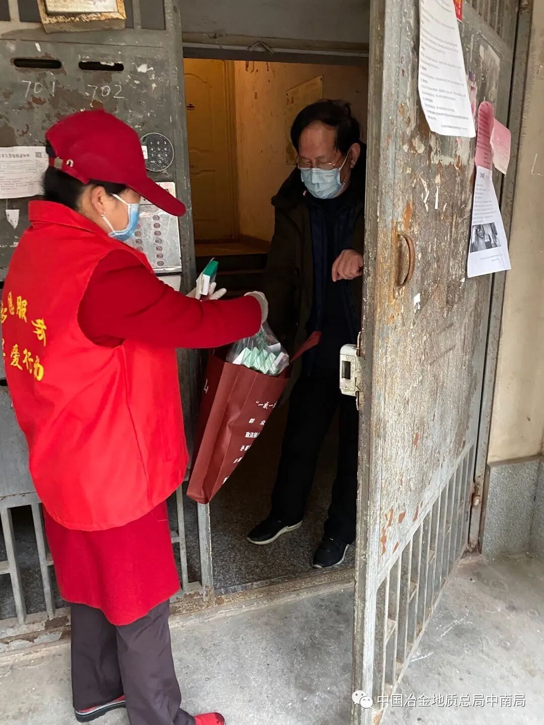 家住在黄陂区横店街道的副院长肖仁德,带领武勘院4名党员第一时间到中华社区报到,并担负起水文队家属院的消毒、人员进出管理、上门检查体温、送药送菜等工作。小区共有45家住户,确诊感染新型冠状病毒2人,为配合社区对“四类人员”进行排查,他们开展三天一次的全院消毒和每天一次的楼栋消毒。消毒完成后,他们又轮流驻守在小区大门,管理人员进出。水文队院内老年人居多,且大多有慢性病,除驻守大门外,其他党员便协助社区工作人员,做好院内居民所需物资的采购工作,挨个搜集住户要求,尽量满足他们的生活需求,第一时间将生活物资送到居民家门口。对于独居老人,他们每天都轮流看望,及时购买老人需要的医疗用品。赵强在消毒物资非常紧缺的情况下,自费购买消毒酒精,分发至家属院的各个住户。其他几位党员也在防护物资紧缺的情况下,主动为那些密切接触者居家隔离人员送去生活必需用品。