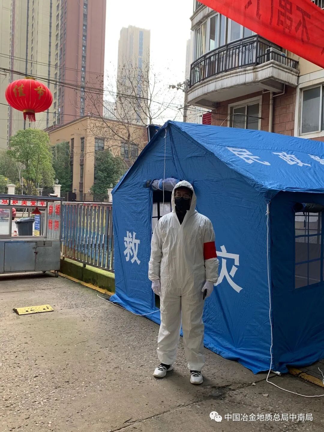 夜幕降临,本来就安静的街道更加寂静无声。汉口重灾区常藤街民政救灾岗亭处,站着一位身穿防护服的“卫士”,他就是副院长吴宏斌。因为是老旧小区,年轻人少,志愿者就更少了,再加上小区有五个出口,且租户、店铺较多,管理难度大,吴宏斌组织仅有的志愿者在每个出口都搭建了临时救灾点帐篷进行值守。为了让其他的志愿者都能休息,吴宏斌经常是在五个出口轮流值守,一守就是十几个小时。小区的居民打趣地说:“怎么哪个出口都有你呀?”“因为我是党员!”他笑着回答道。